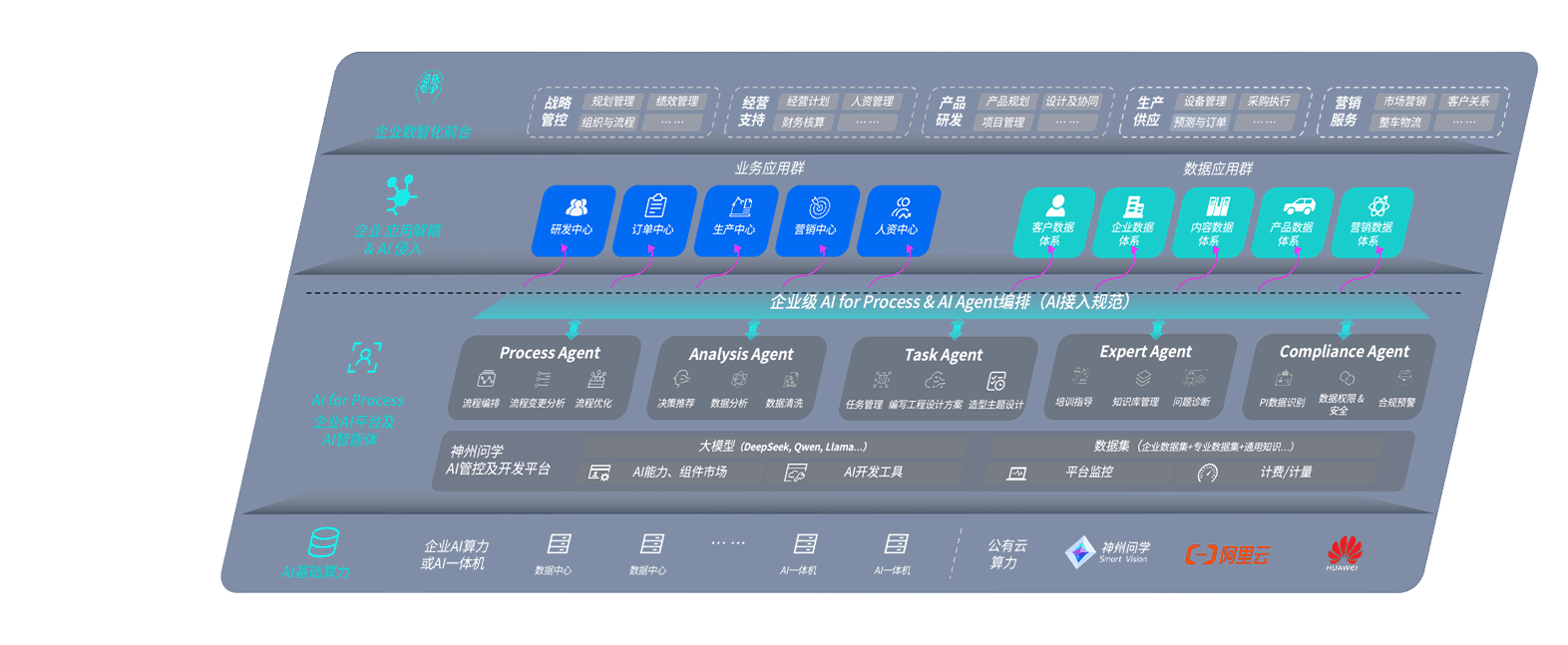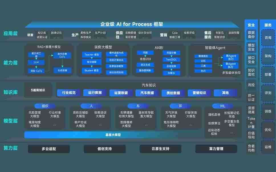 NG导航问学智车解决方案是一套基于AI技术的汽车行业智能化系统,,,,覆盖从底层算力到顶层AI应用的全栈方案。。方案由算力层、、模型层和应用层组成:算力层,,,方案支持多种一体机配置,,,具备云端灵活部署、、、、多云适配以及动态优化计算资源的能力;模型层,,NG导航问学平台版提供了企业级AI应用一站式构建与管理平台,,,支持基于后训练强化技术的汽车企业专属模型的训练、、、、评测和运营;应用层,,,,NG导航问学DeepSeek版提供包括超级员工、、、智能招采、、、智能营销、、智能客服、、、AI for BI等一系列解决方案,,可助力汽车行业实现数字化转型,,,让管理更智能、、响应更敏捷。。