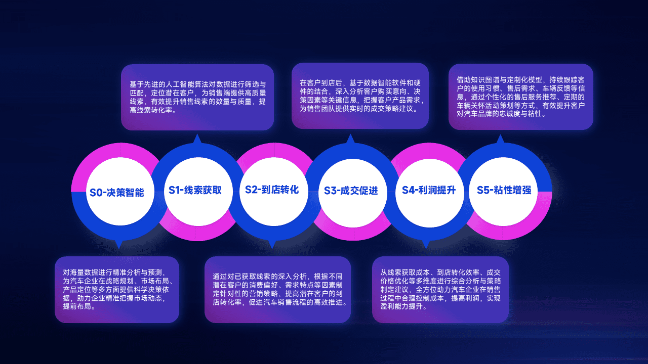 通过拓宽潜在客户来源、、、、优化线索分配并提高到店转化率,,,以增强销售效率。。。同时,,,利用线索数据不断优化分析模型,,,,有效提升转化率,,扩大营销影响力。。